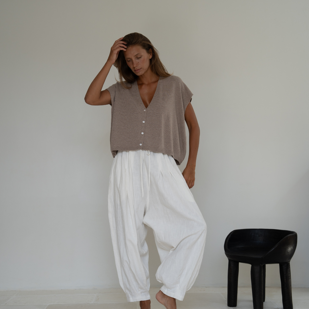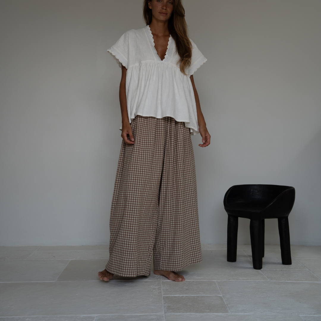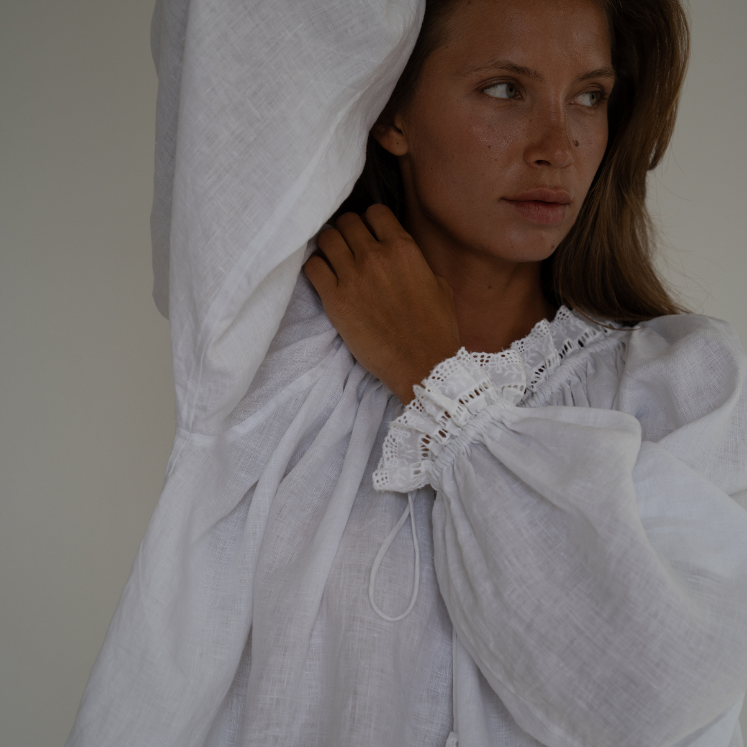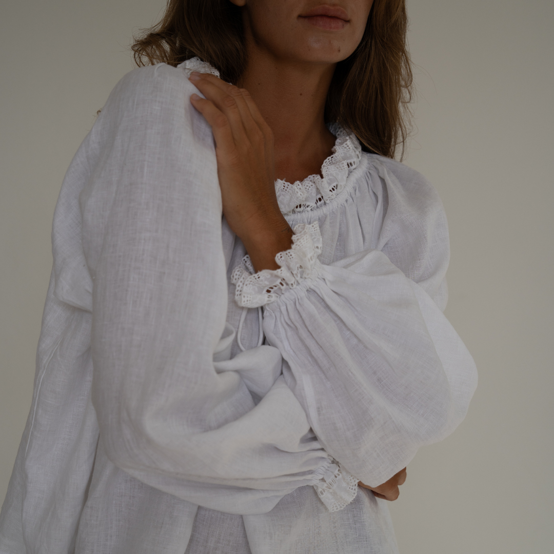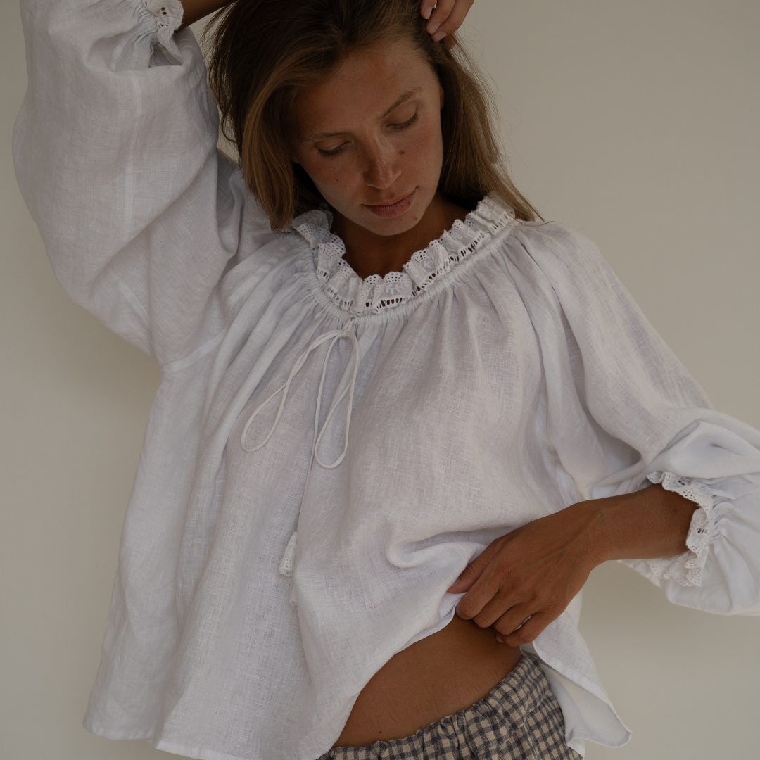 All of our garments are made with natural fibres, pure linens, hemp, silk, and soft cottons. They are designed for comfortable wearing, mostly one size and oversized. They are all French seamed, with a focus on quality and longevity.