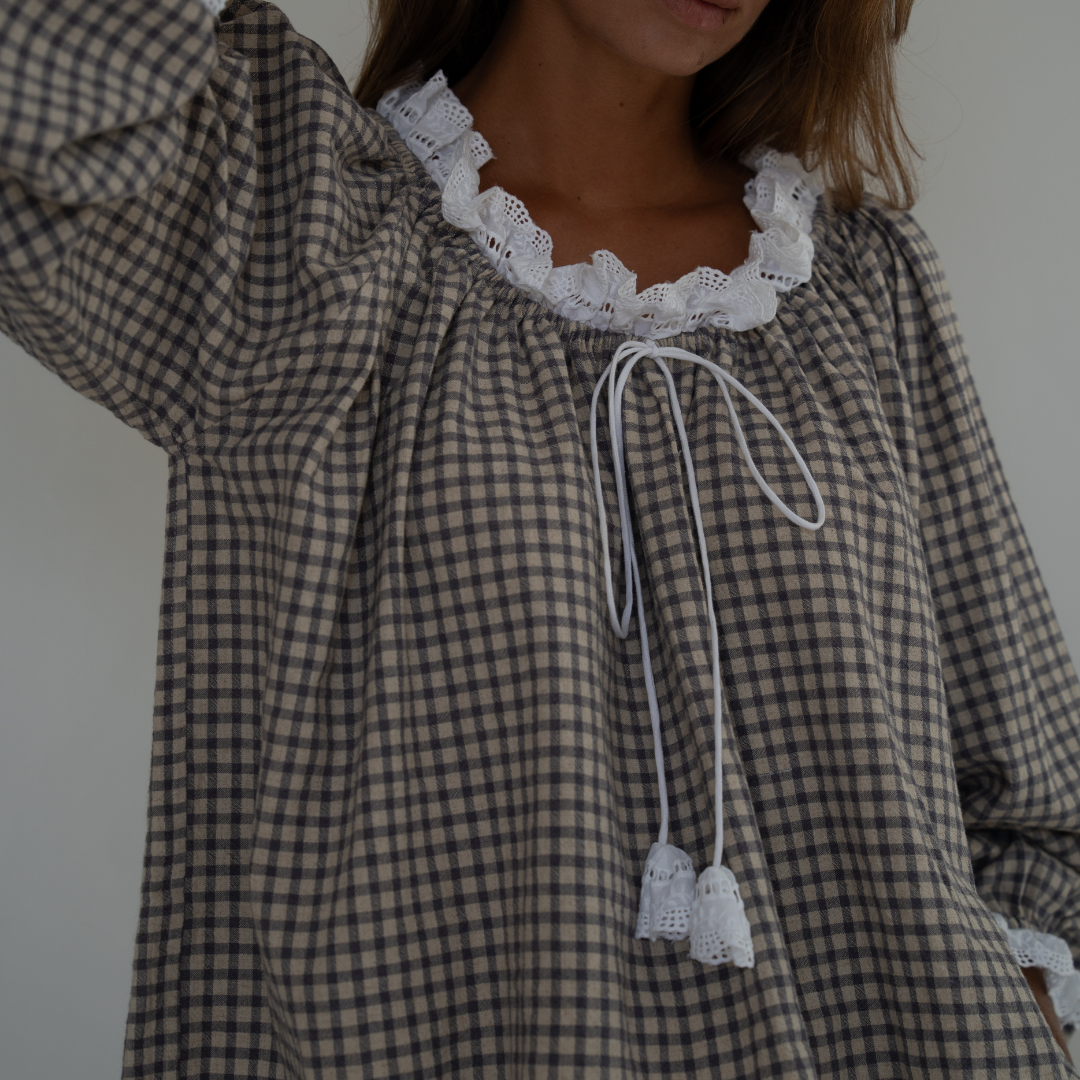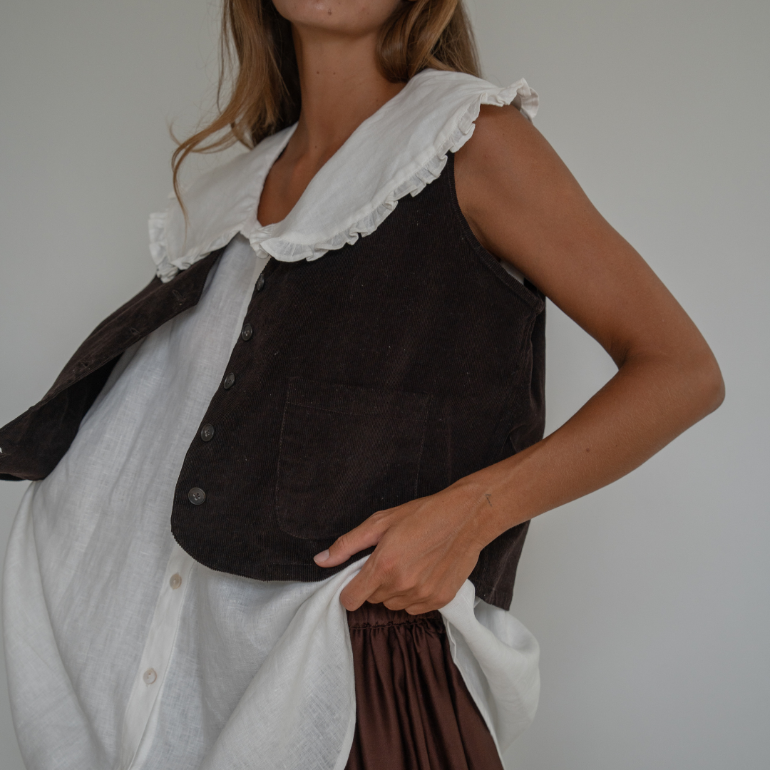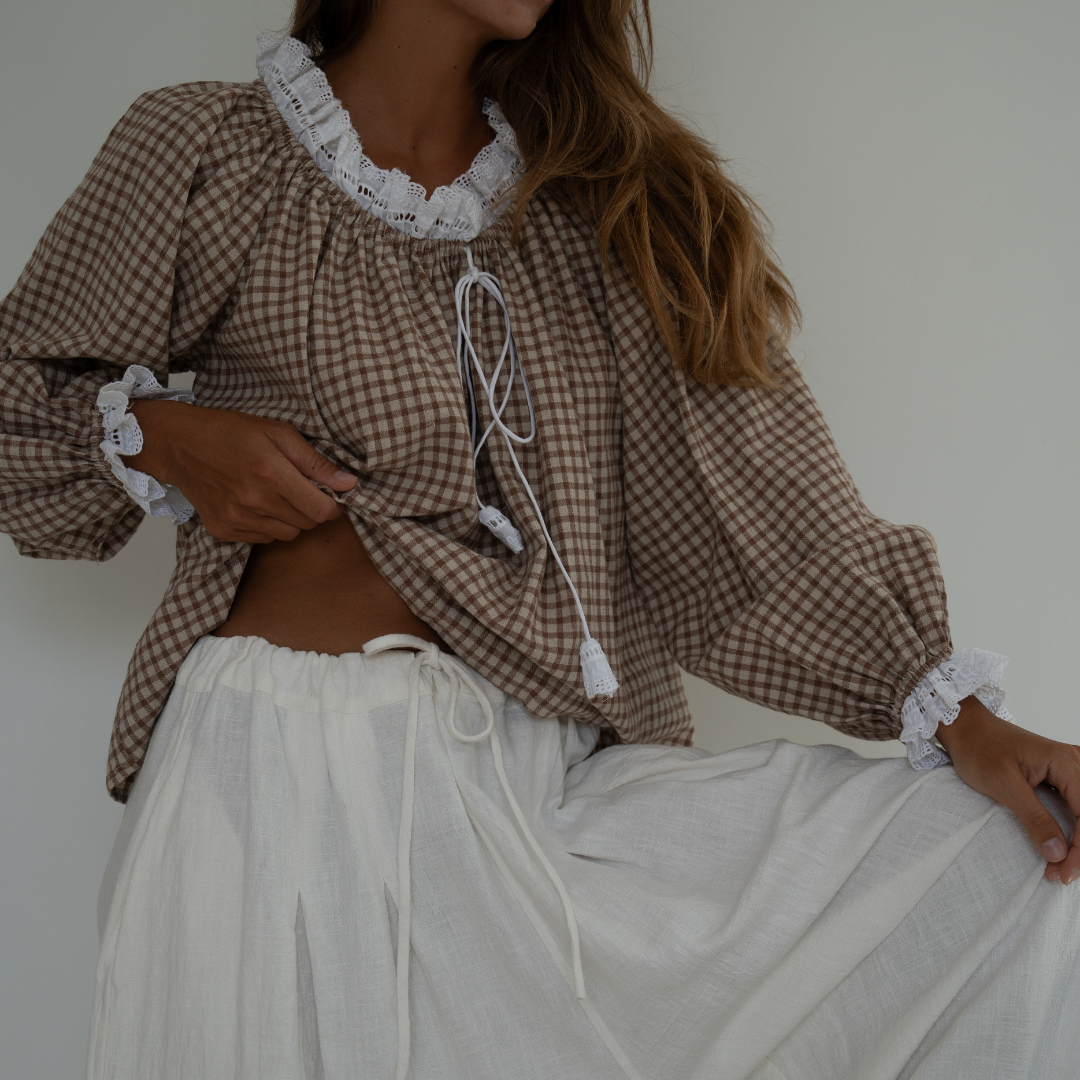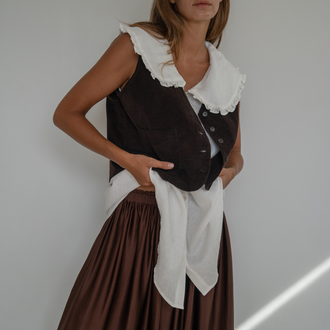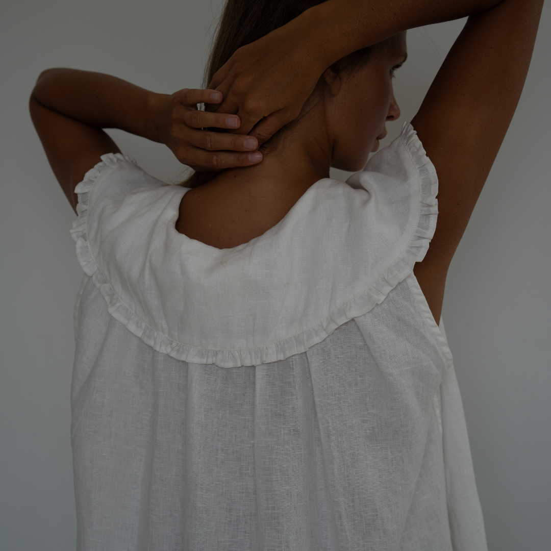 All of our garments are made with natural fibres, pure linens, hemp, silk, and soft cottons. They are designed for comfortable wearing, mostly one size and oversized. They are all French seamed, with a focus on quality and longevity.