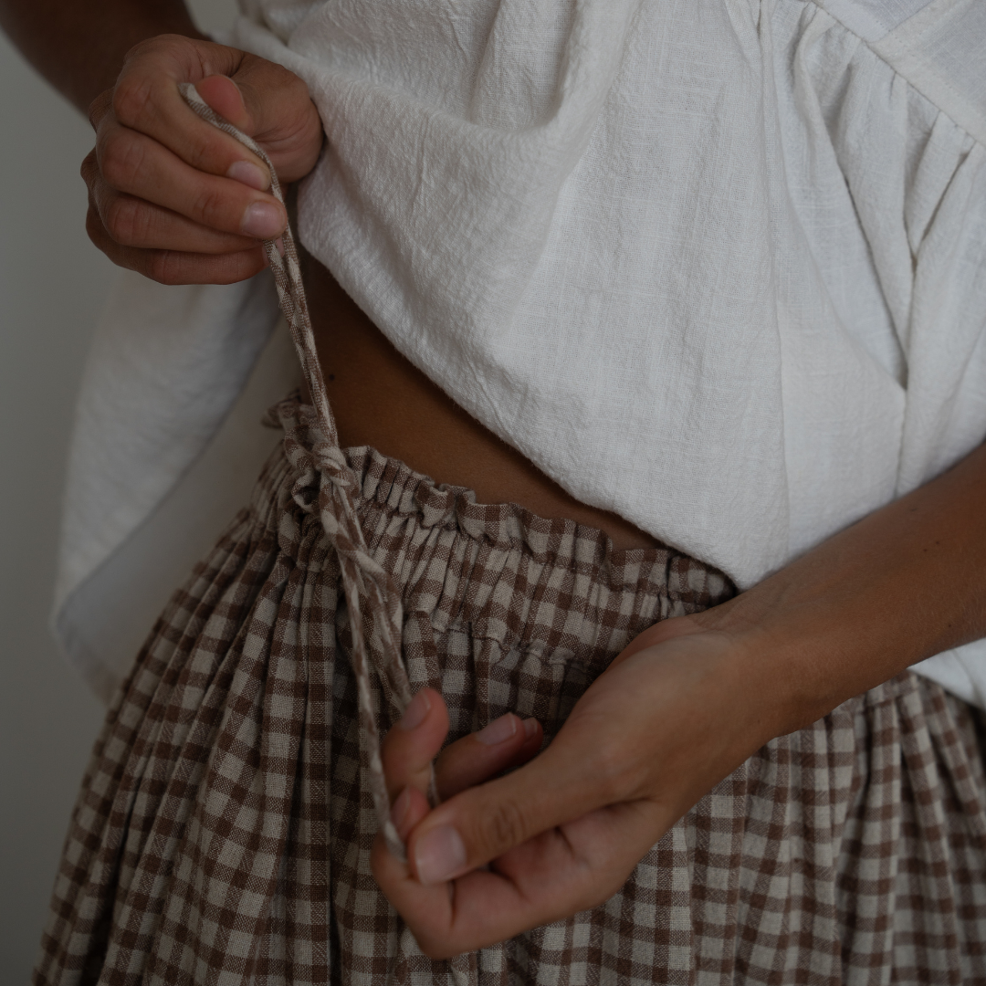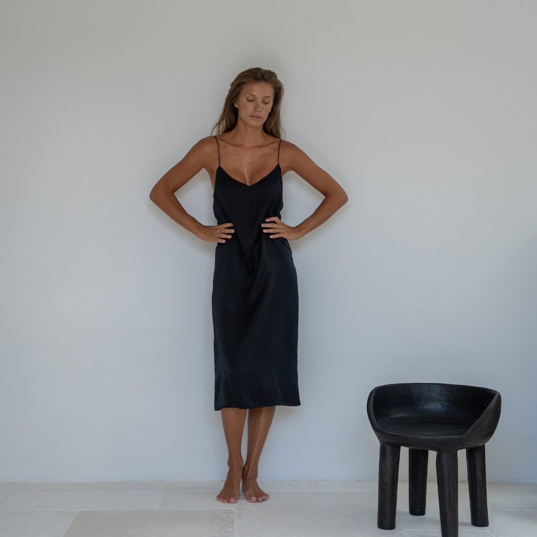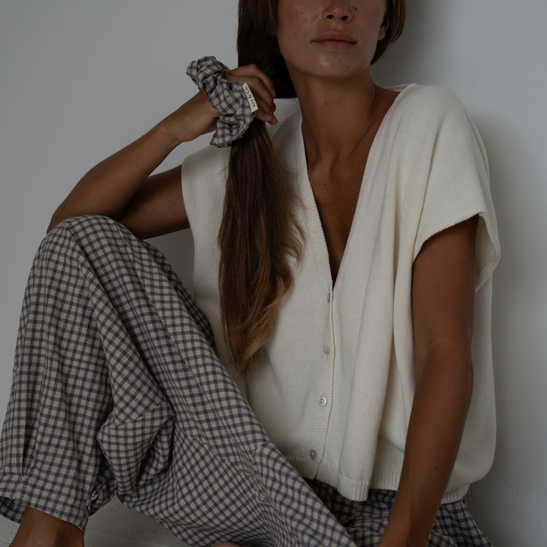 All of our garments are sewn by our small team of 5 tailors in Bali, Indonesia. All of our parcels arrive with a complimentary drawstring bag, and scrunchies, made from our fabric off-cuts making our production process waste free.