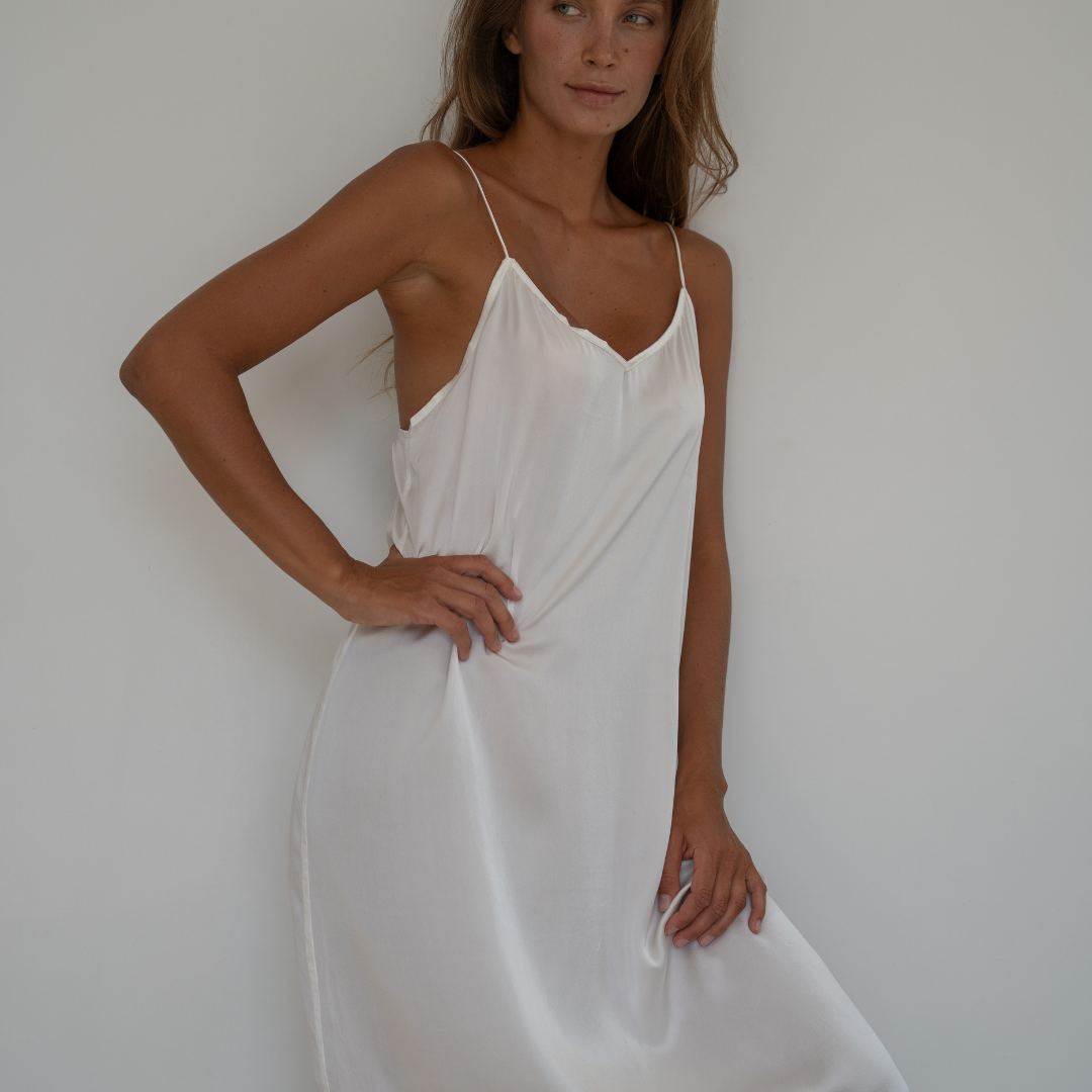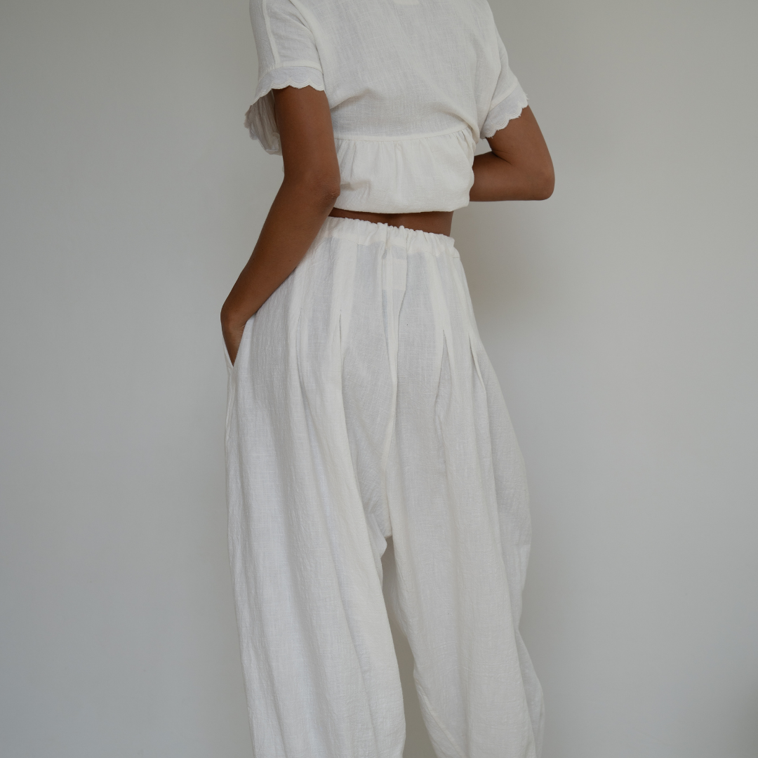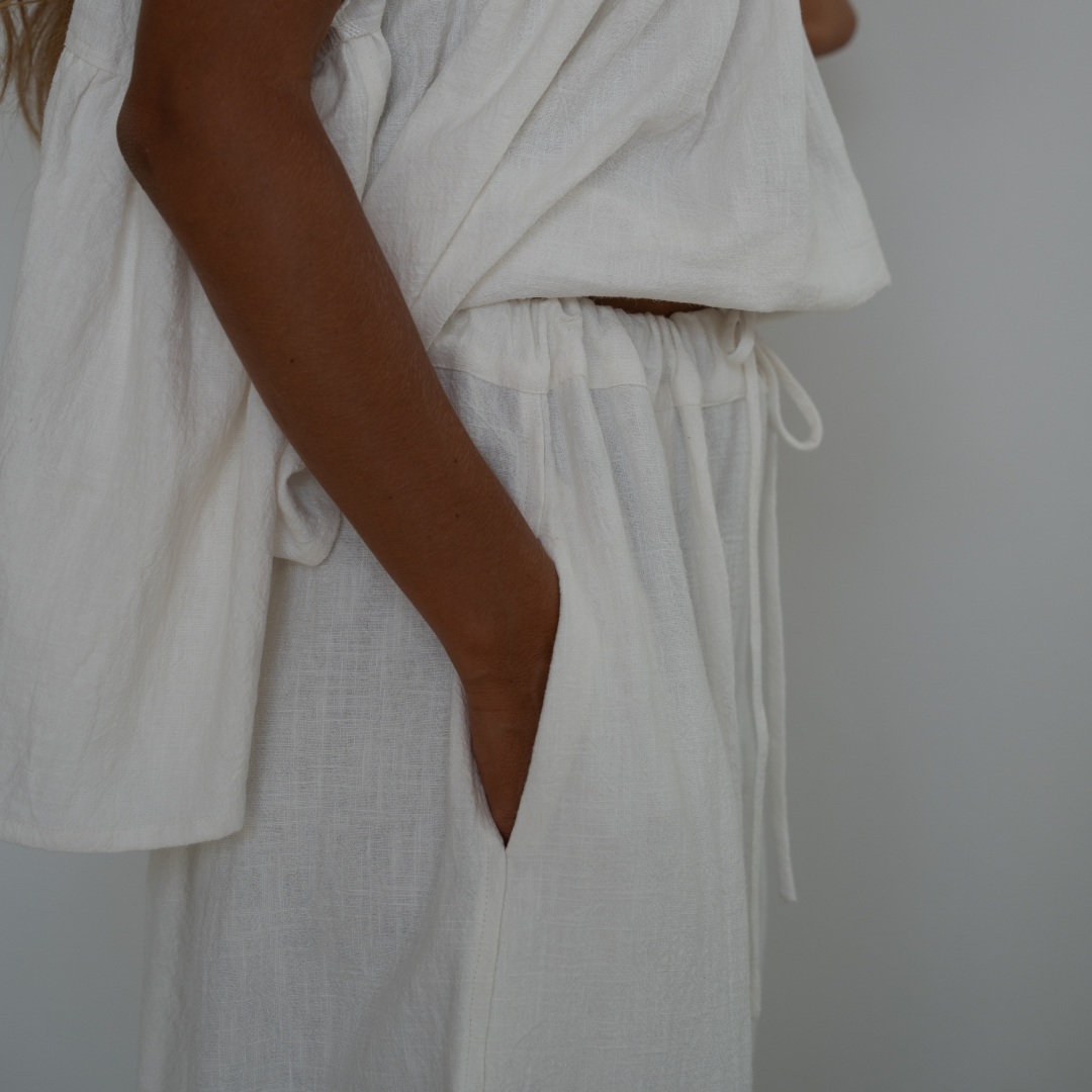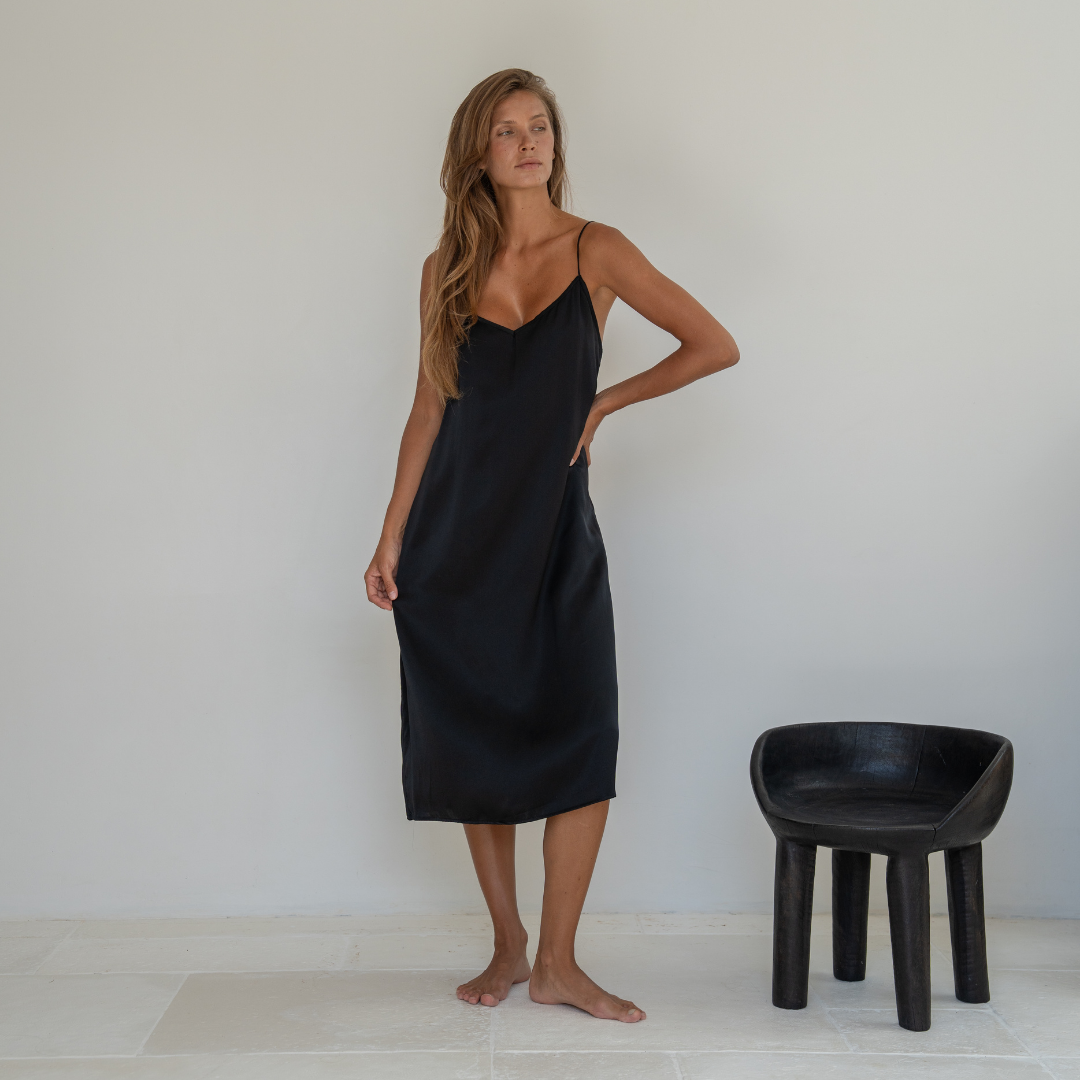 All of our garments are sewn by our small team of 5 tailors in Bali, Indonesia. All of our parcels arrive with a complimentary drawstring bag, and scrunchies, made from our fabric off-cuts making our production process waste free.