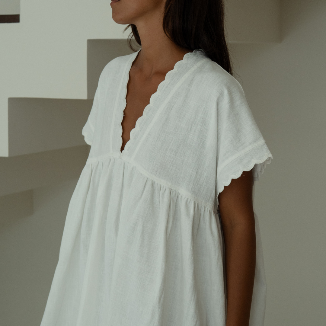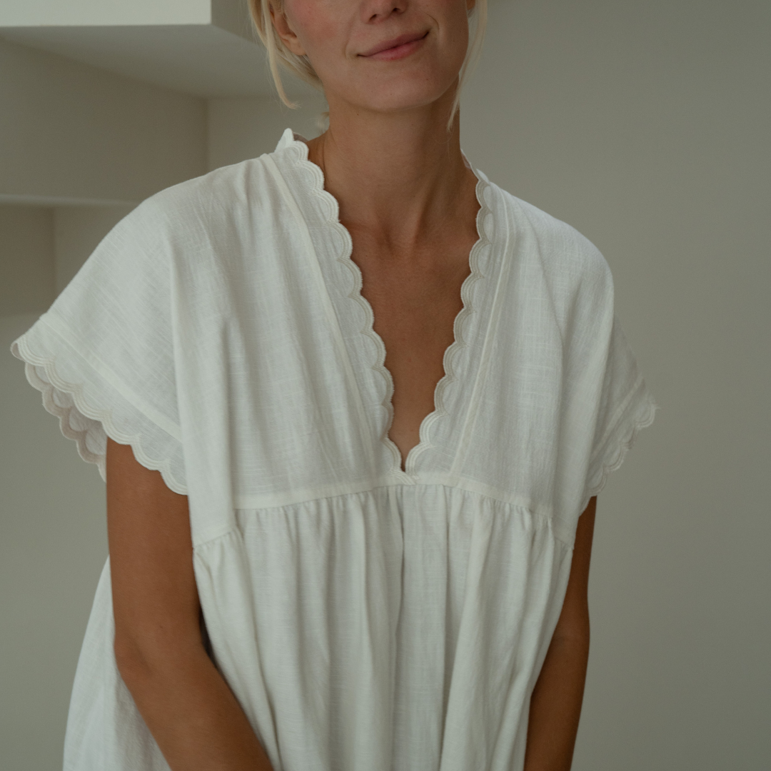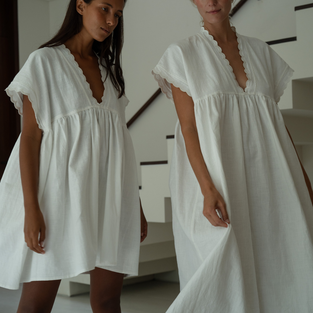 All of our garments are made with natural fibres, pure linens, hemp, silk, and soft cottons. They are designed for comfortable wearing, mostly one size and oversized. They are all French seamed, with a focus on quality and longevity.