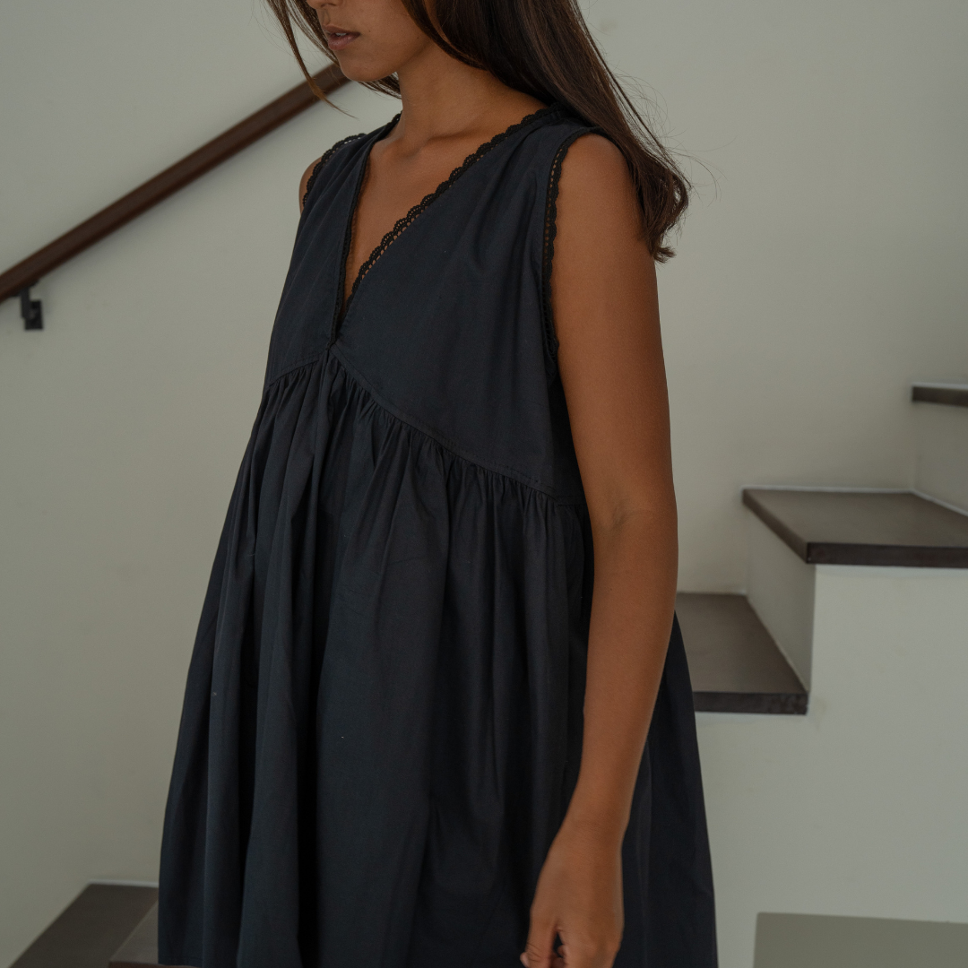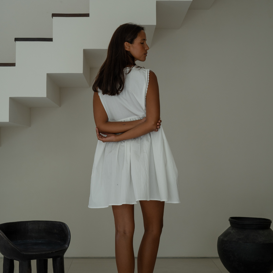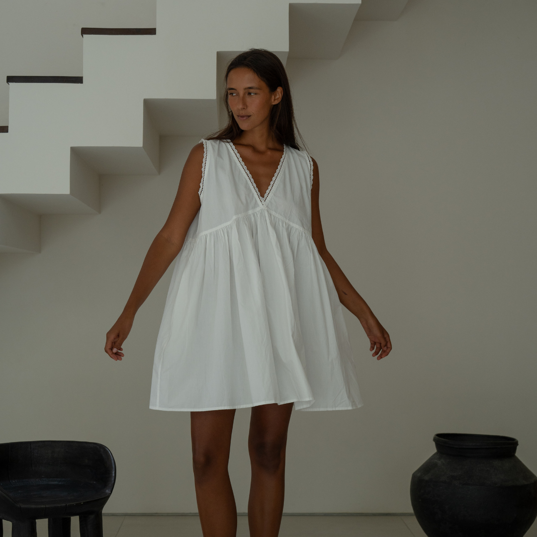 All of our garments are sewn by our small team of 5 tailors in Bali, Indonesia. All of our parcels arrive with a complimentary drawstring bag, and scrunchies, made from our fabric off-cuts making our production process waste free.