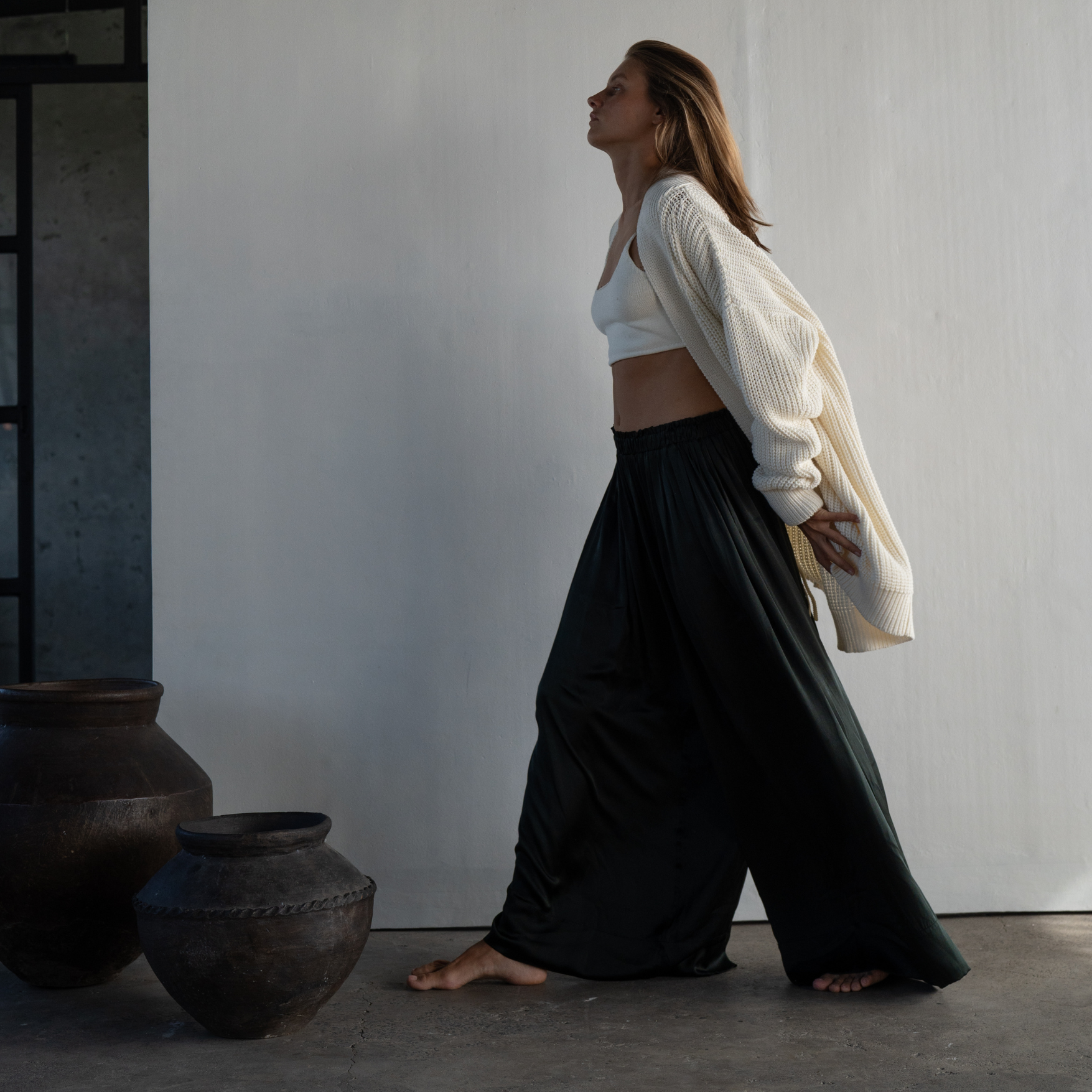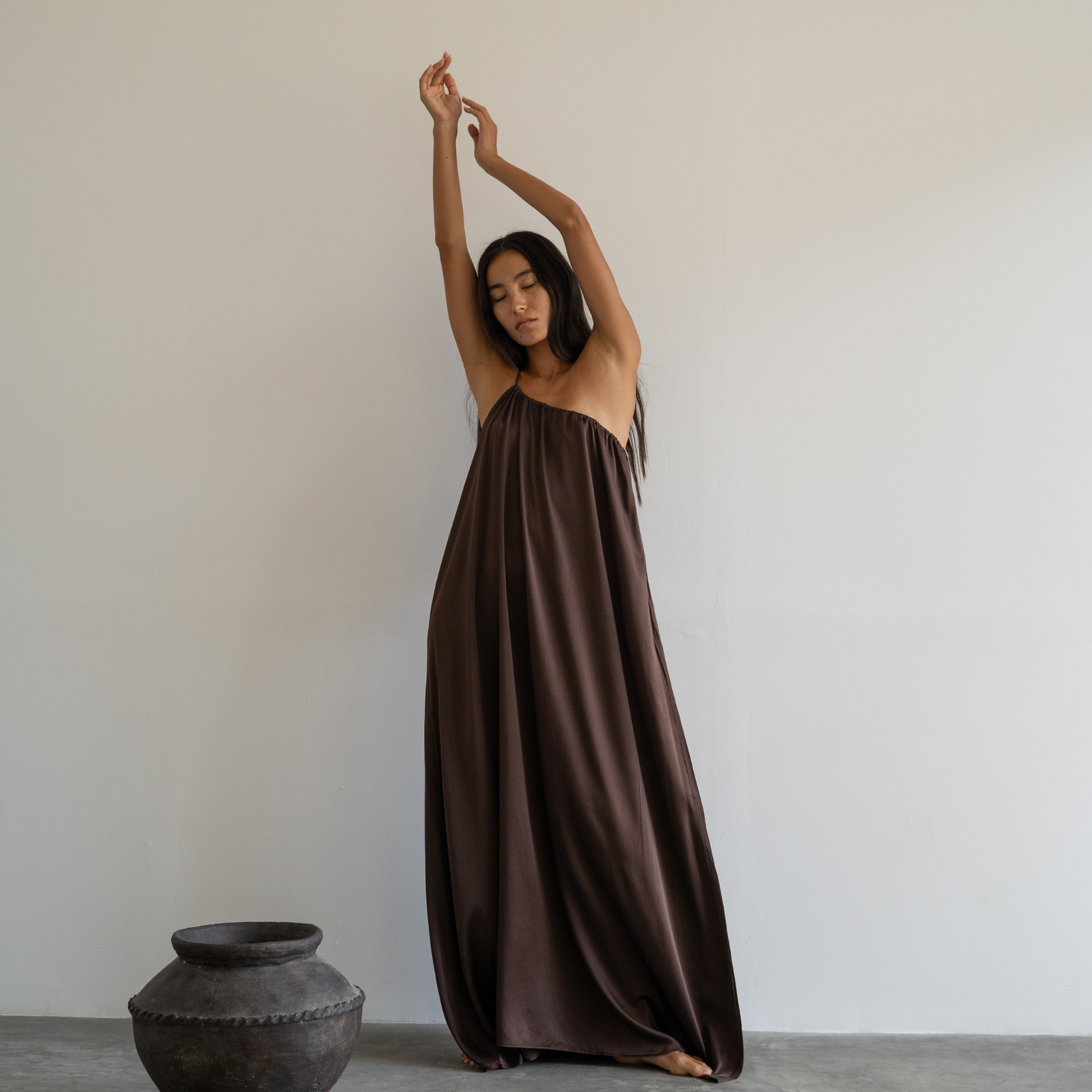 Crafted from Grade A Mulberry silk, the finest 1% of silk in the world, this fabric is celebrated for its luminous sheen, smooth texture, and enduring strength. Its perfectly uniform fibres allow it to flow like liquid, catching the light with effortless grace from morning to evening.